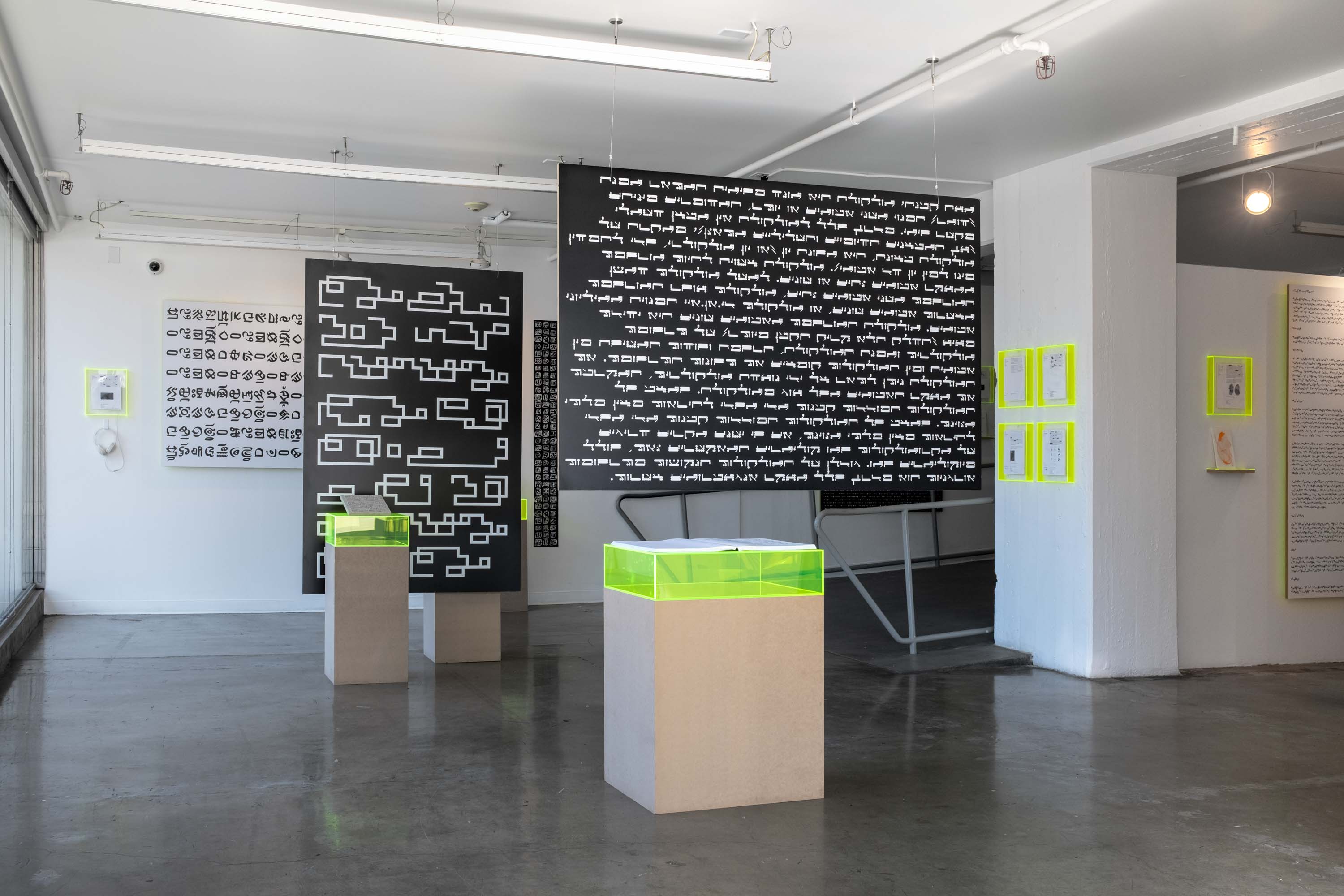 With a history spanning more than five millennia, the practice of writing serves as a testament to the enduring human impulse to record, preserve, and transmit information across time and space. Writing systems—sets of standardized symbols and rules used to visually convey language—can carry within them a culture’s history, traditions, and collective knowledge, making them powerful vessels of cultural preservation and expression. Quasi: Experimental Writing Systems is an exhibition about invented or imaginary writing systems. Klingon, Elvish, and Kryptonian are popular contemporary examples, but they represent only a fraction of a much broader landscape. Unlike writing systems that have evolved organically over generations of collective usage, the projects showcased in the exhibition present new configurations of signs and symbols, meticulously crafted at distinct points in time, each born with intention and purpose.